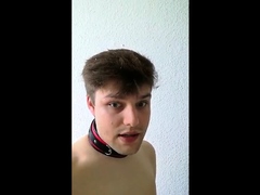 Collared Sissy slave in chastity is horny