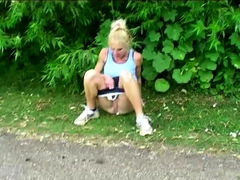 Lovely Amateur teen brunette masturbating outdoor